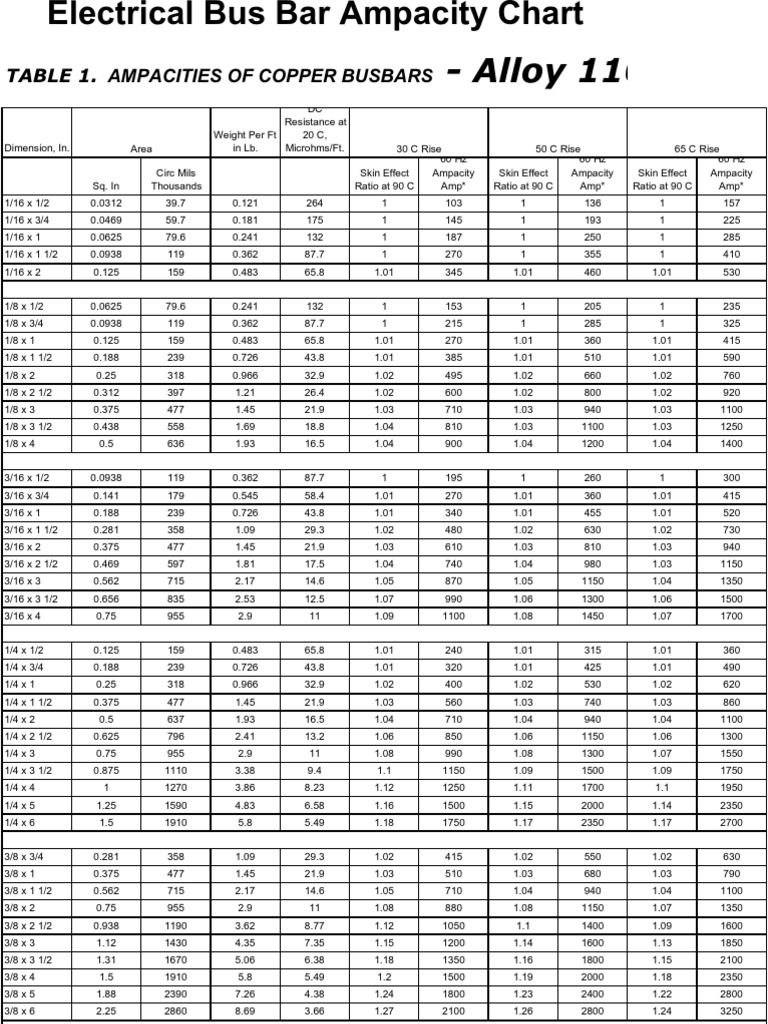 Copper Bus Bar Table PDF